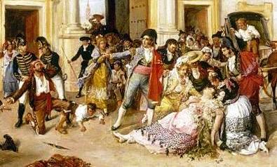 El óleo de Canniccioni ubica la acción momentos antes del último encuentro, se respira la tensión de Don José, va en busca de Carmen, mientras tanto en la plaza de toros entre vítores y aplausos triunfa Escaramillo. Carmen decide enfrentar su destino, durante su ausencia ha correspondido a las pretensiones del toreador. ... ¡Jamás Carmen cederá! ¡Libre nació y libre morirá! ...