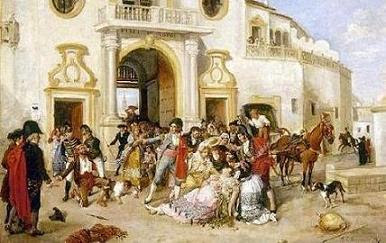 El pintor sevillano Manuel Cabral recoge magistralmente el drama de la última escena de Carmen. Aun cuando la luz y el color de Sevilla permanecen intactos, atrás queda el humor festivo que reinaba en la plaza, Escaramillo va en busca de Carmen cuya decisión y enfrentamiento con Don José le ha costado la vida.